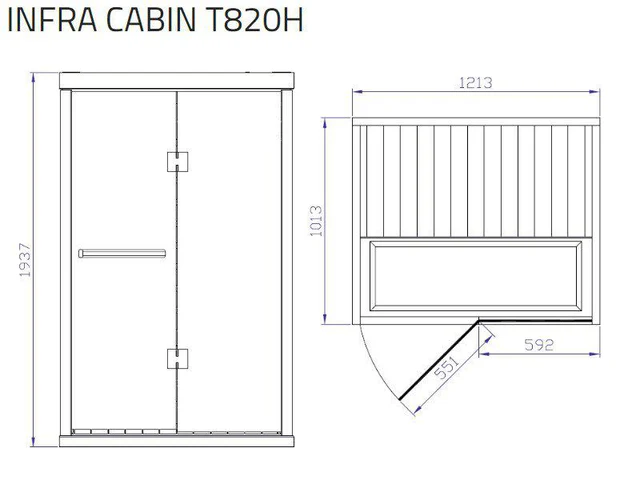 De Tylö T820H is de populaire “sweet spot”: compact genoeg voor veel ruimtes, maar comfortabel voor één of twee personen.