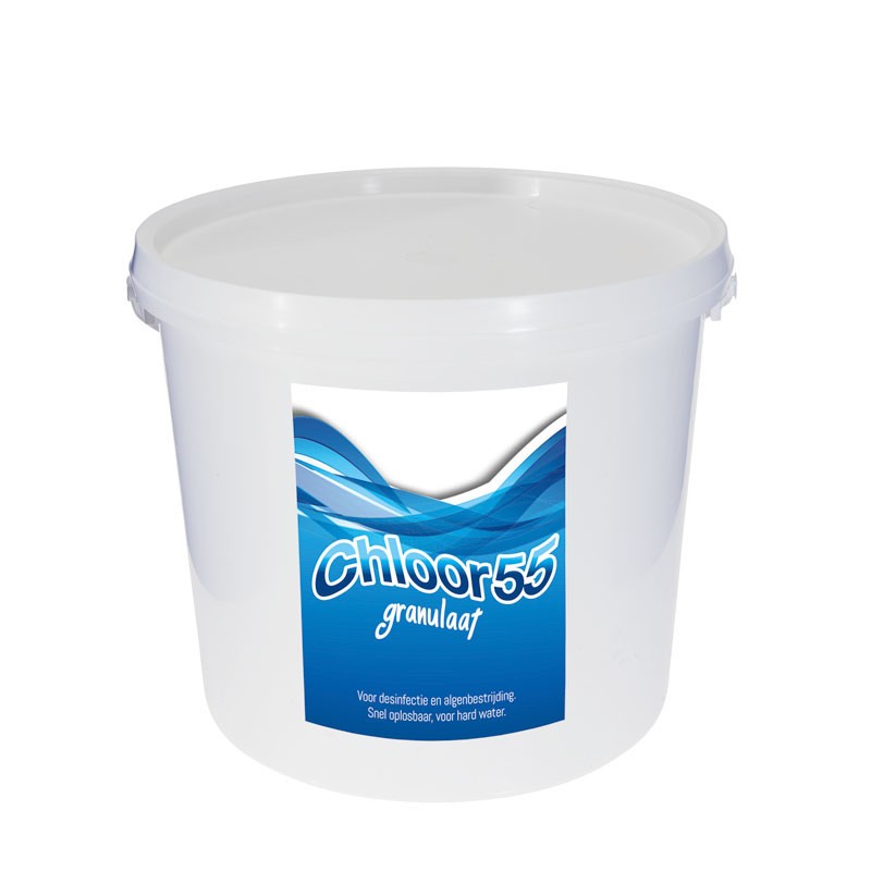 Voorkom groen water met behulp van de reinigingskracht van chloor 55 granulaat. Met een goede wateronderhoud geef je algen in je zwembad geen schijn van kans. Indien het chloorniveau van je zwembad in een snelle tijd weer op peil moet zijn, is chloorgranulaat de uitkomst voor jou. Ook zwembadwater met algenvorming of een overmaat aan oxiderende stoffen (chloorlucht) kan een boost van chloor gebruiken. Dit wordt ook wel een schokbehandeling genoemd. Chloor 55 granulaat is gestabiliseerd chloor in poedervorm dat zorgt voor een snelle chlooropname in het water. Hierdoor is het chloorpeil van je zwemwater weer snel op orde. Let op! Wacht na een schokbehandeling met zwemmen totdat de normale chloorwaarde weer is bereikt. Chloor 55 granulaat is speciaal geschikt voor zwemwater met een harde of zachte waterhardheid.